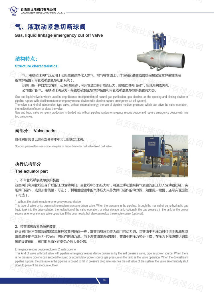 气、液联动紧急切断球阀